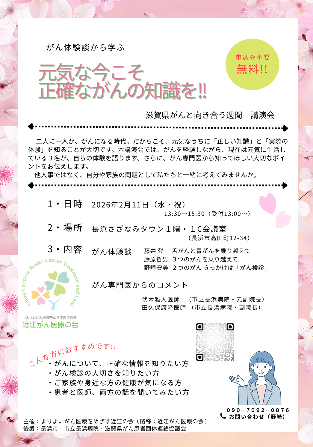 後援:長浜市・市立長浜病院・滋賀県がん患者団体連絡協議会