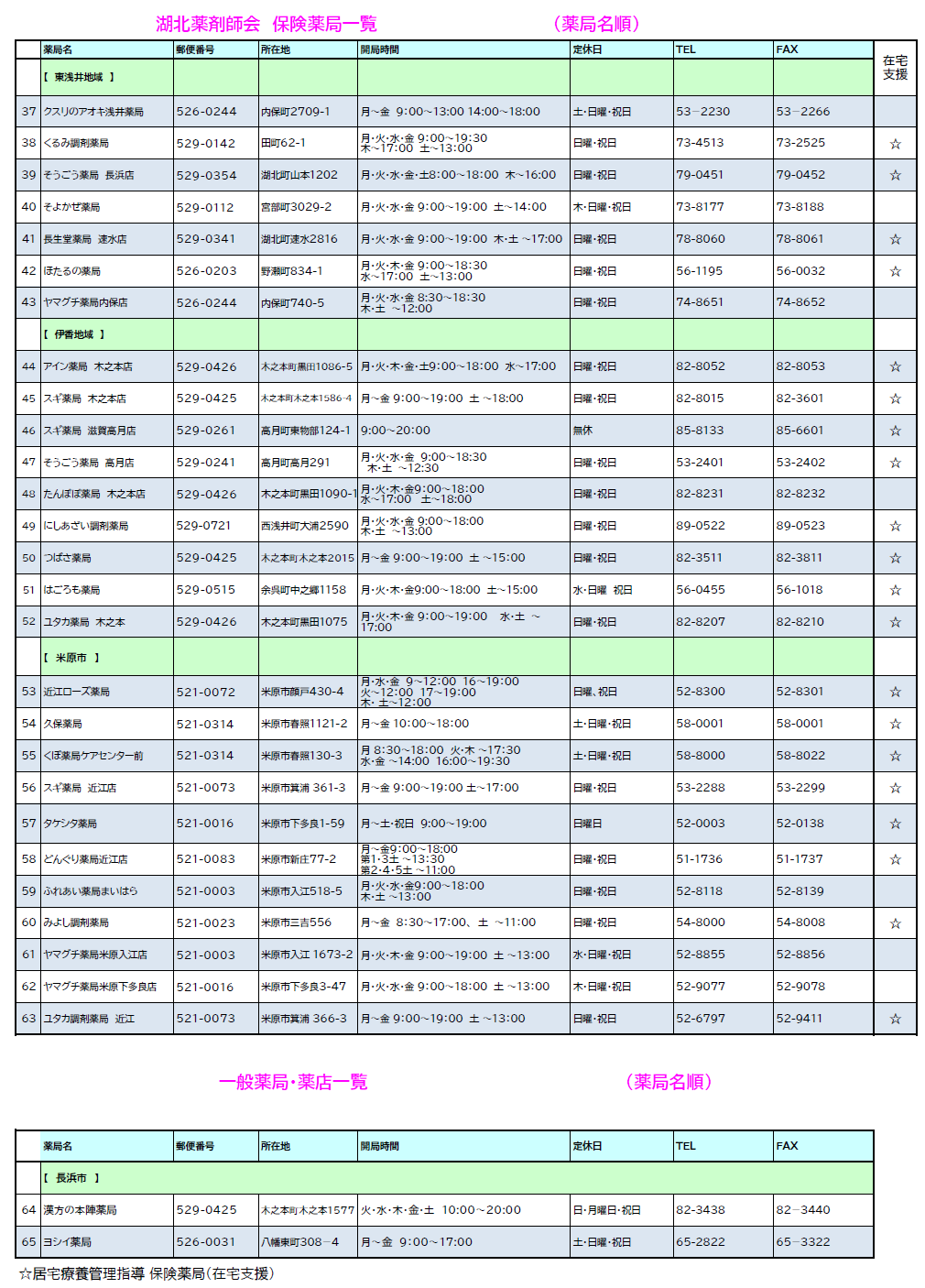 薬局一覧はこちらからダウンロードして頂けます(2025年3月更新)